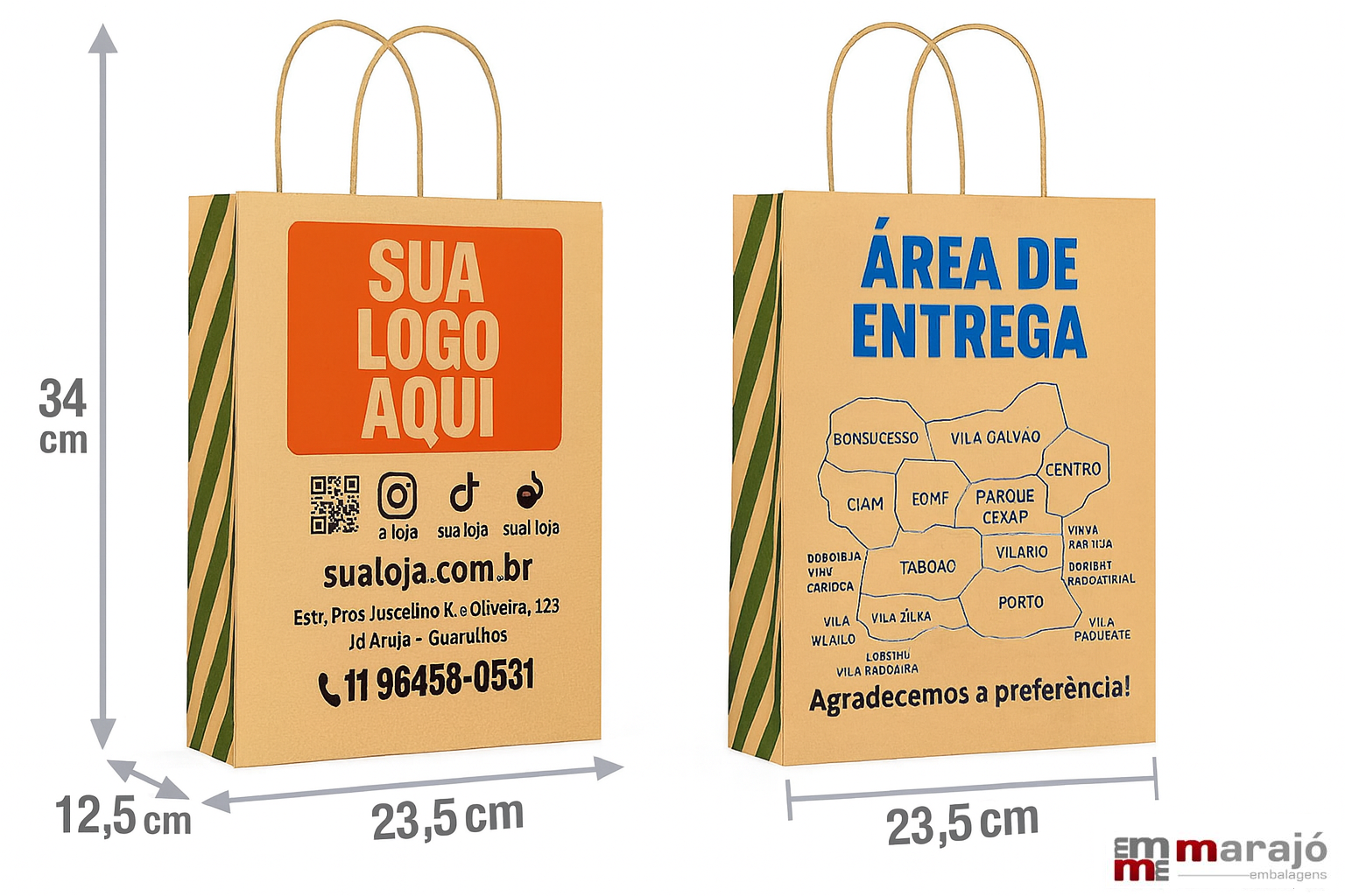 Padrão ideal para delivery de alimentos, kits promocionais e produtos frescos